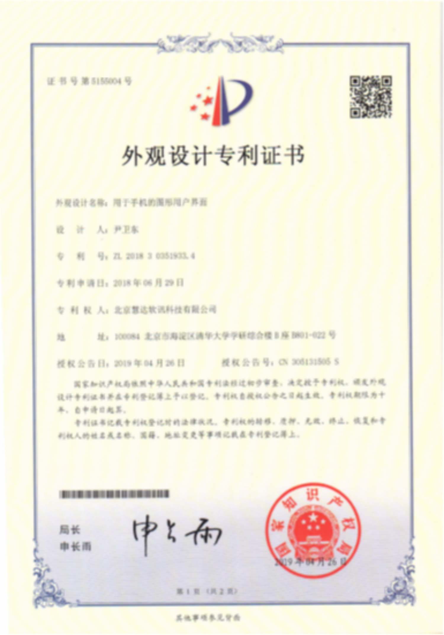 2019 年 4 月,获“中关村高新技术企业”证书。